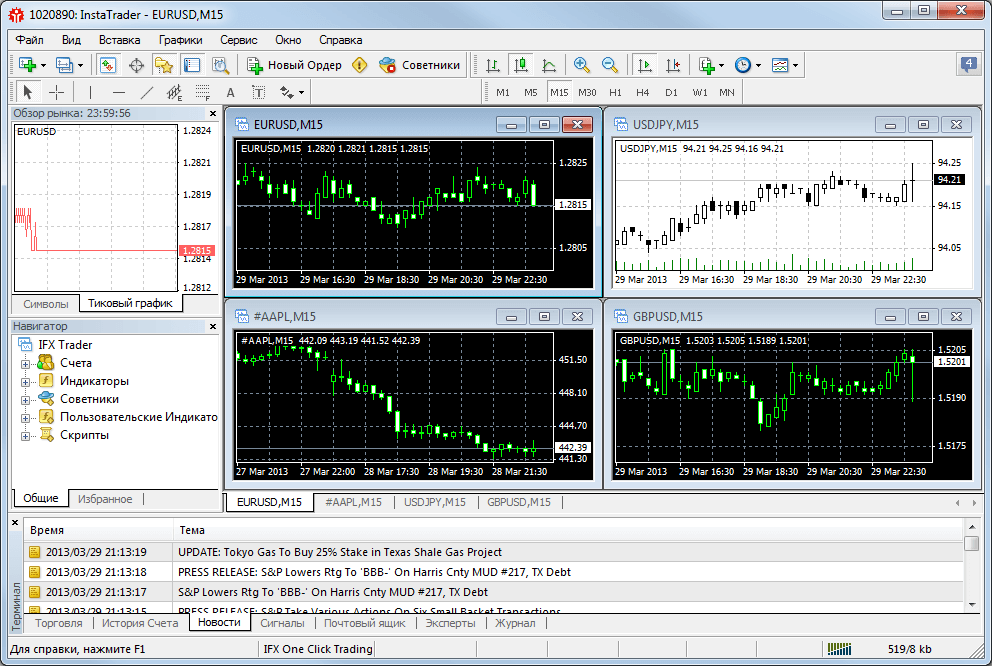 - отсутствие ограничений в трейдинге: МТ4 поддерживает все виды торговых методов – хеджирование и LIFO
