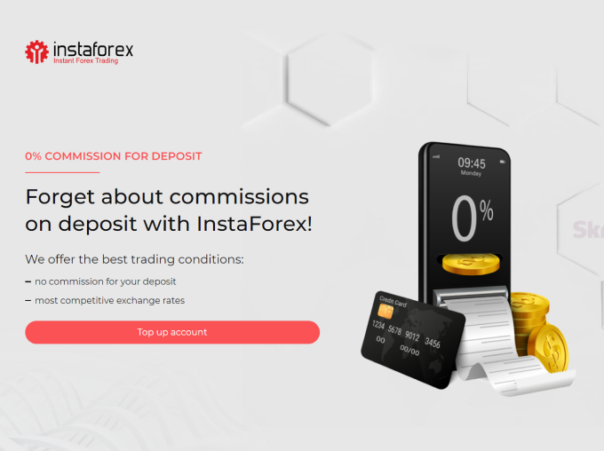 InstaForex offers the most beneficial exchange rate and charges no commissions for deposits. No matter what trading method a client is using - the deposited amount is credited to a trading account in full, without any fees.