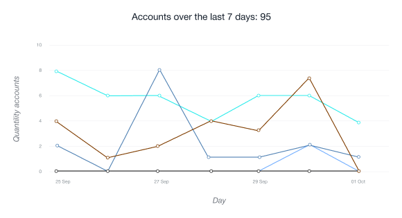 • You can trace the general statistics on the registered accounts, pinpoint the fruitful months, mark a slump in the referring activity, or find the reasons to search for a new, more efficient marketing strategy.