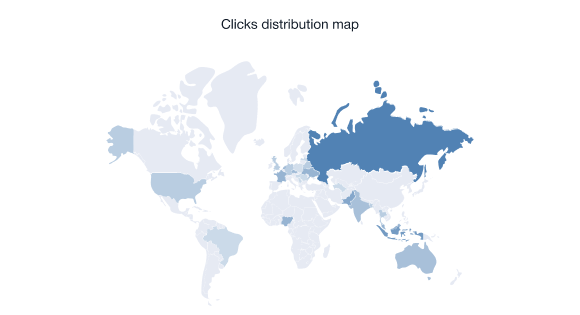 • Clicks distribution statistics show countries with the highest rates of the affiliate link traffic.