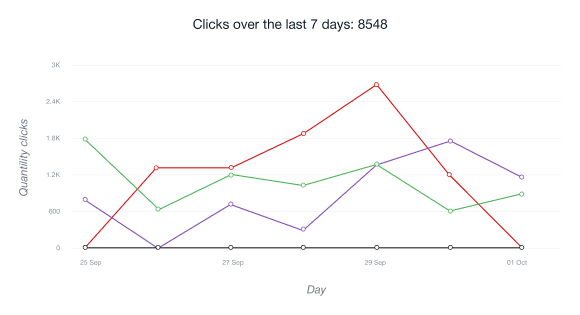 • The Unique Clicks chart shows the number of users who followed your affiliate link for the first time from the given IP address over the past 24 hours.
