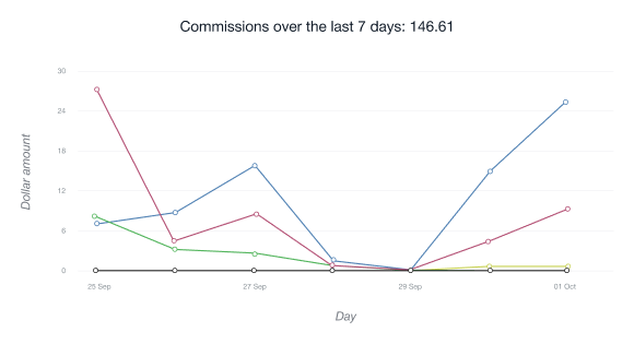 • The chart shows the total number of clicks referrals gave to your affiliate link.