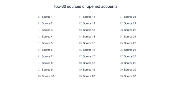 Top-30 sources of opened accounts