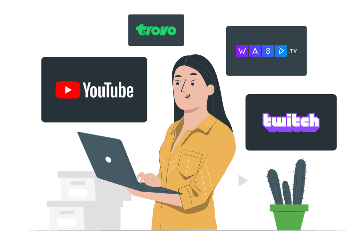 Наши стримеры могут проводить трансляции с помощью мобильных устройств и компьютеров, используя любую платформу (например, YouTube, Twitch, VK, Zoom, Skype, GoogleMeet и так далее).